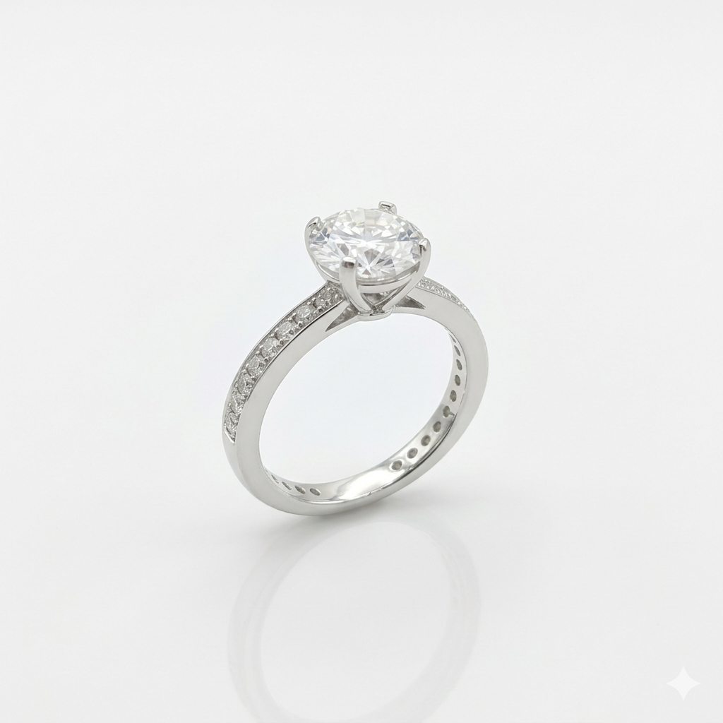 Περιγραφή:Δαχτυλίδι μονόπετρο με πλαϊνές πέτρες, σχεδόν ολόβερο. .