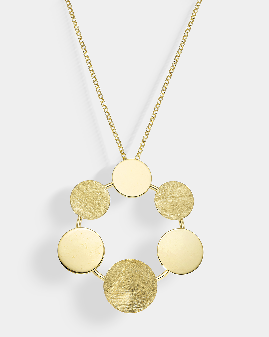 Περιγραφή:Κολιέ μοντέρνο με κύκλους λουστρέ και σατινέ.